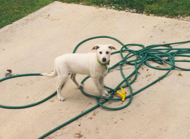 As a puppy Rex chewed hoses