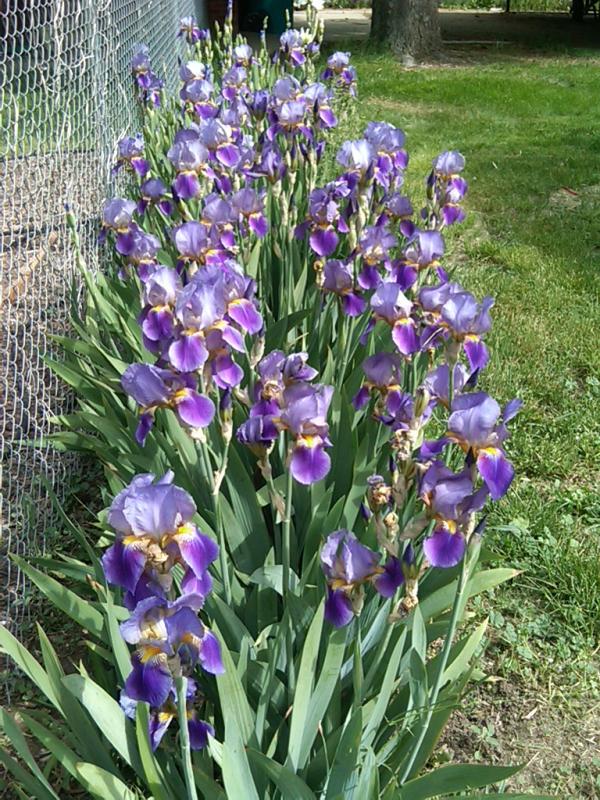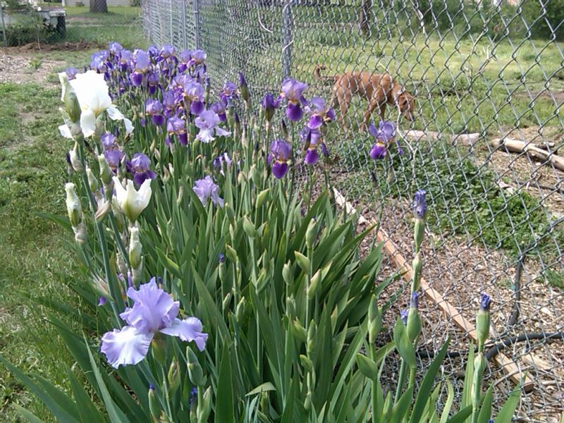 irises fence and vegetable garden