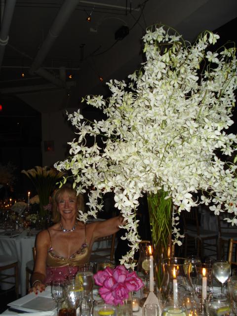 Amy Treitel with flower arrangement