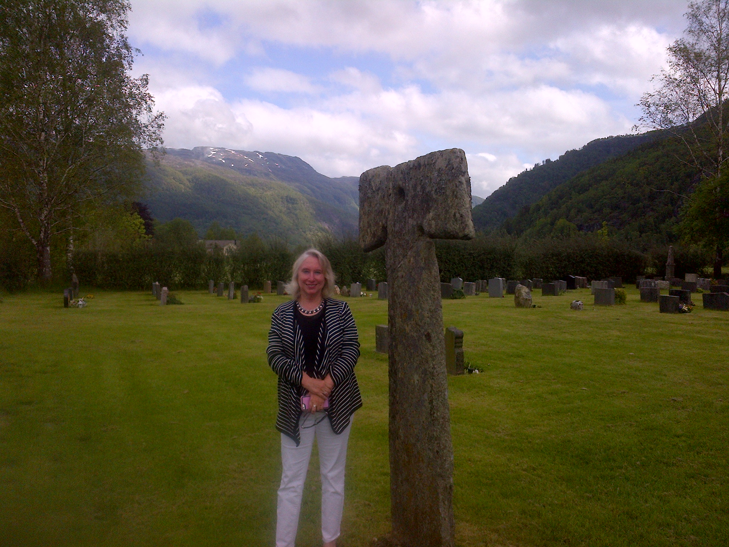 Cousin Corinne with the old stone cross Date: 06/21/2015 Cousin Corinne with the old stone cross
