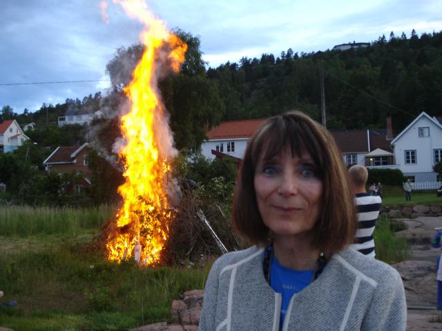 4th cousin Rønnaug Cousin Rønnaug with St Johns Day (midsummer) fire in Svelvik Date: 06/23/2015 Cousin Rønnaug with St Johns Day (midsummer) fire in Svelvik